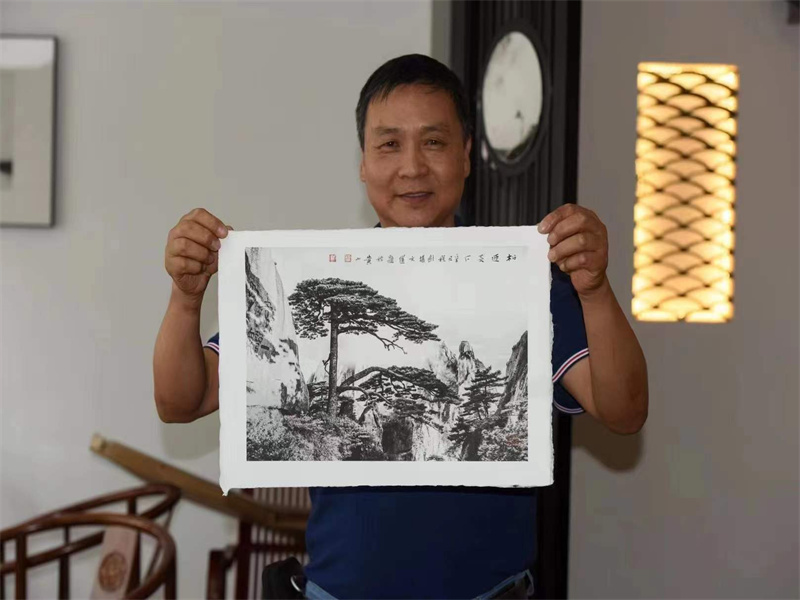 公司總經理朱建新應攝影大師程劍邀請參加市文聯創藝基地授牌,作品是黃山攝影大師拍攝的,由黃山市書法家協會主席題了字,是攝影作品與書法結合體現在我們生產的紙上的作品,是非常好的創意
