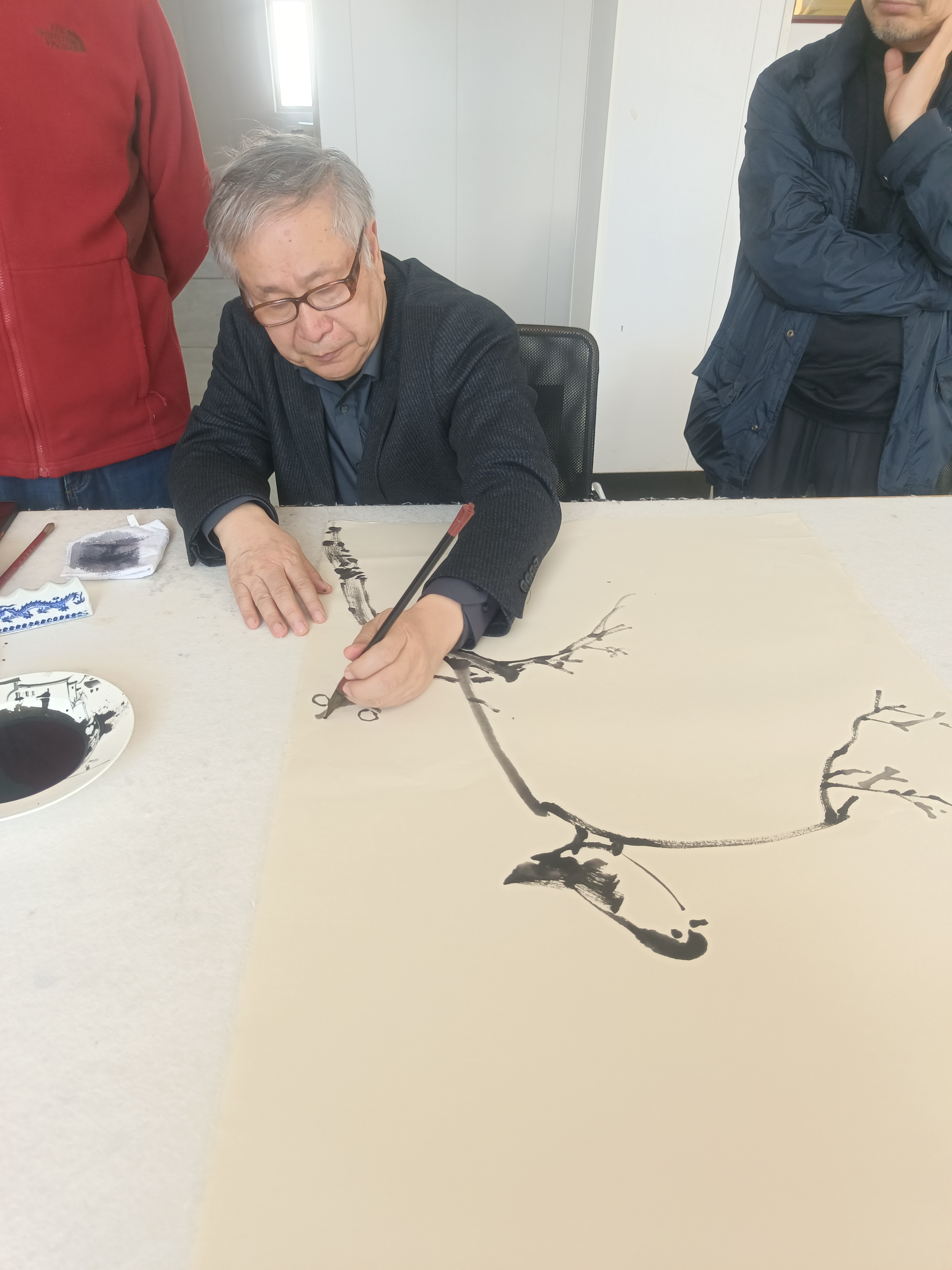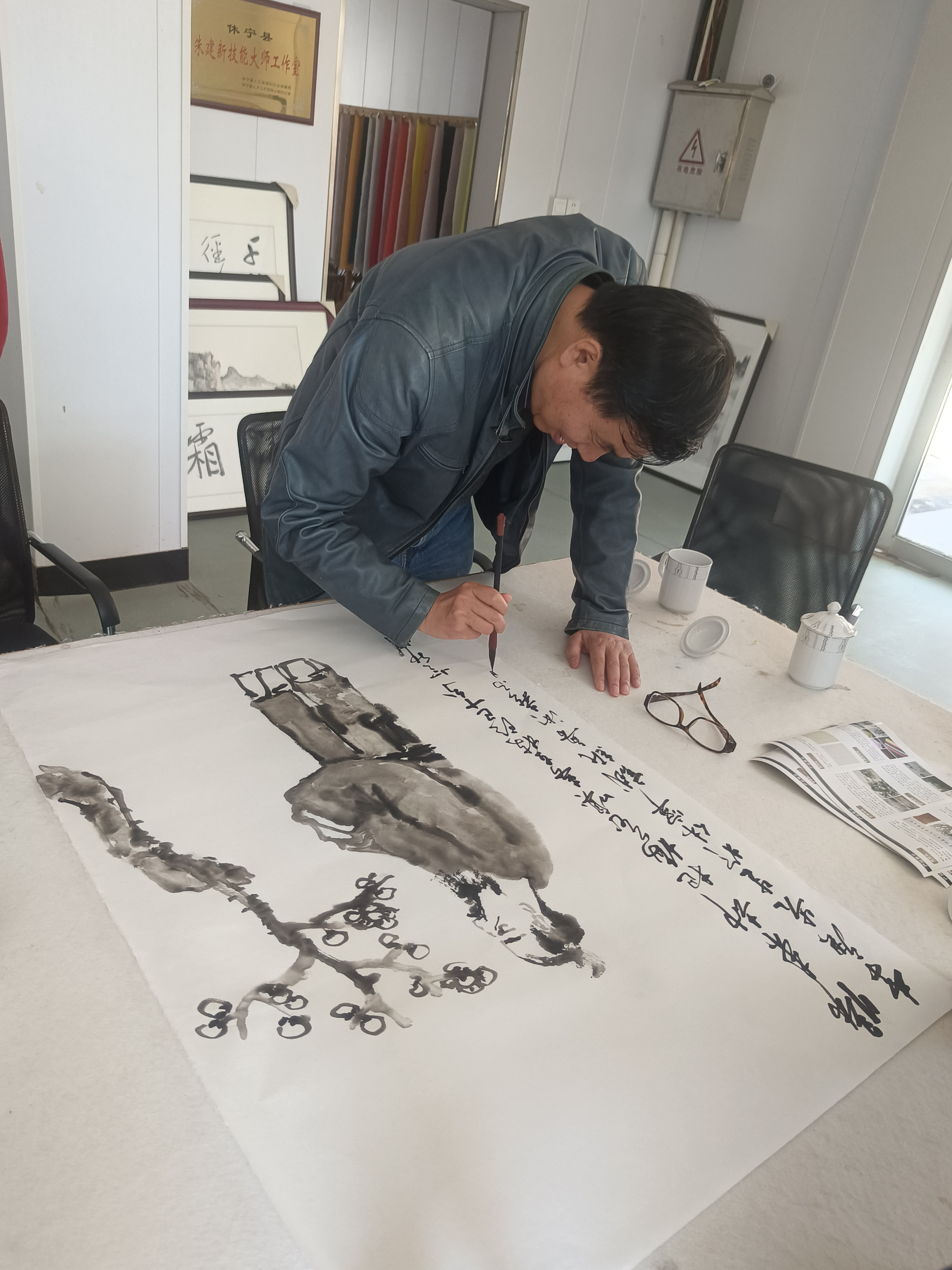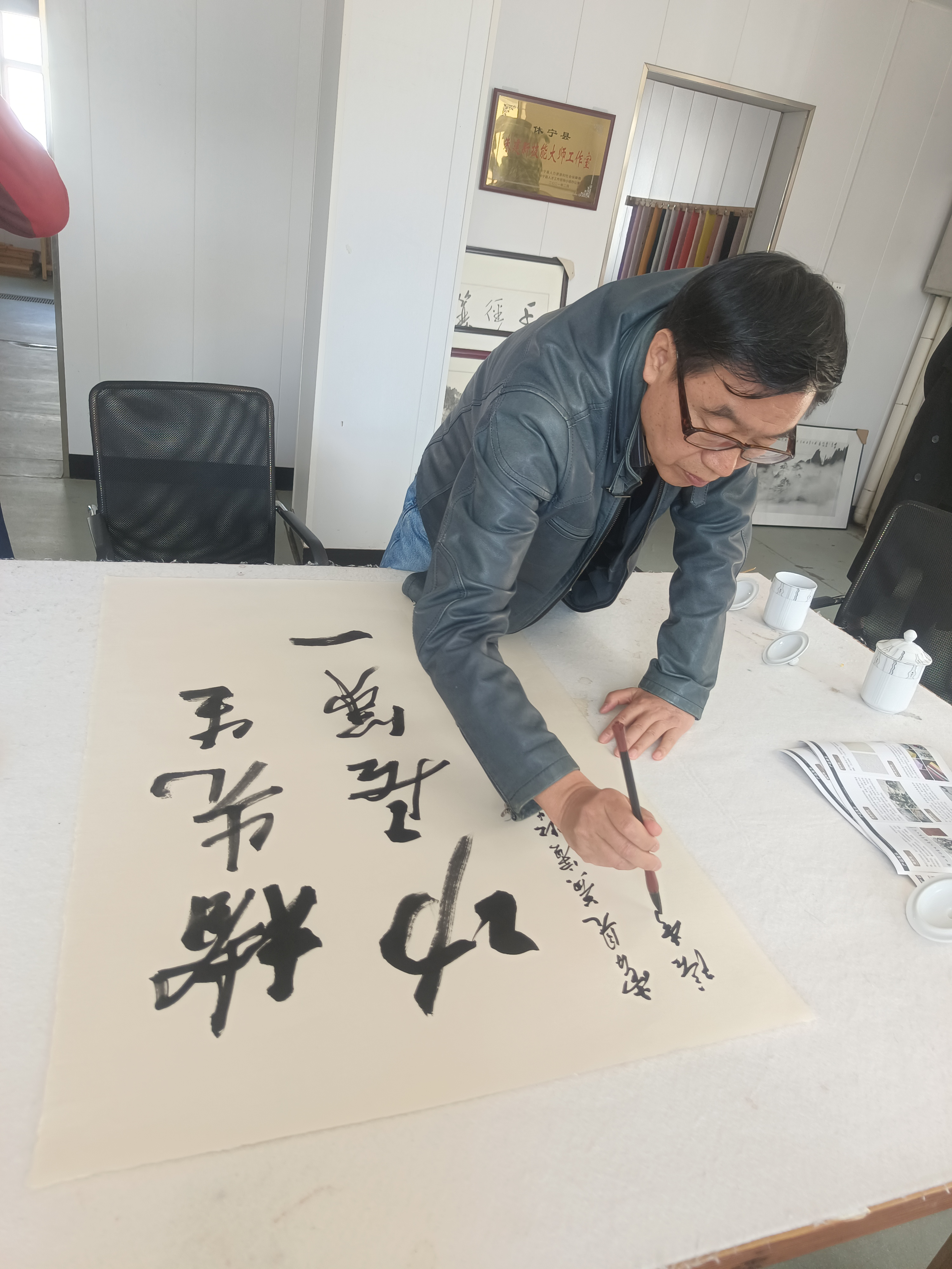 近距離觀摩大師創作,著名畫家李庚老師和著名文化學者、書法家王魯湘老師抽出寶貴時間來公司指導試筆,并為我們留下三幅珍貴墨寶,這是對我們做徽州皮紙的肯定,也是對我們的鞭策,使我們更有信心堅守敬畏之心,匠人精神,做出更好的徽州皮紙。感謝安徽書法協會會長王云龍全程陪同