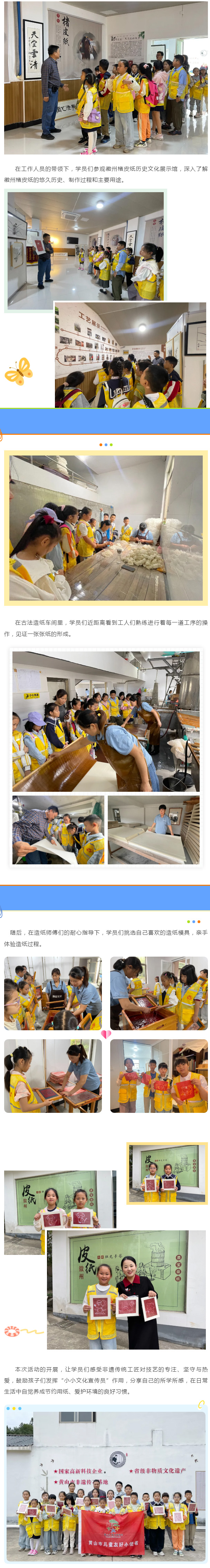 黃山市婦女兒童活動中心帶領小記者班的學員們走進黃山市凝霜文化發展有限公司,探尋徽州楮皮紙的歷史底蘊、文化內涵以及傳承發展之路。